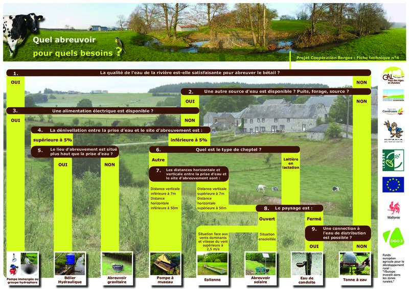 Publication du GAL Pays des Condruses réalisée en collaboration avec le projet Riparia. Elle traite cette fois du choix de l'abreuvoir en fonction de la situation et de l'installation des clôtures.